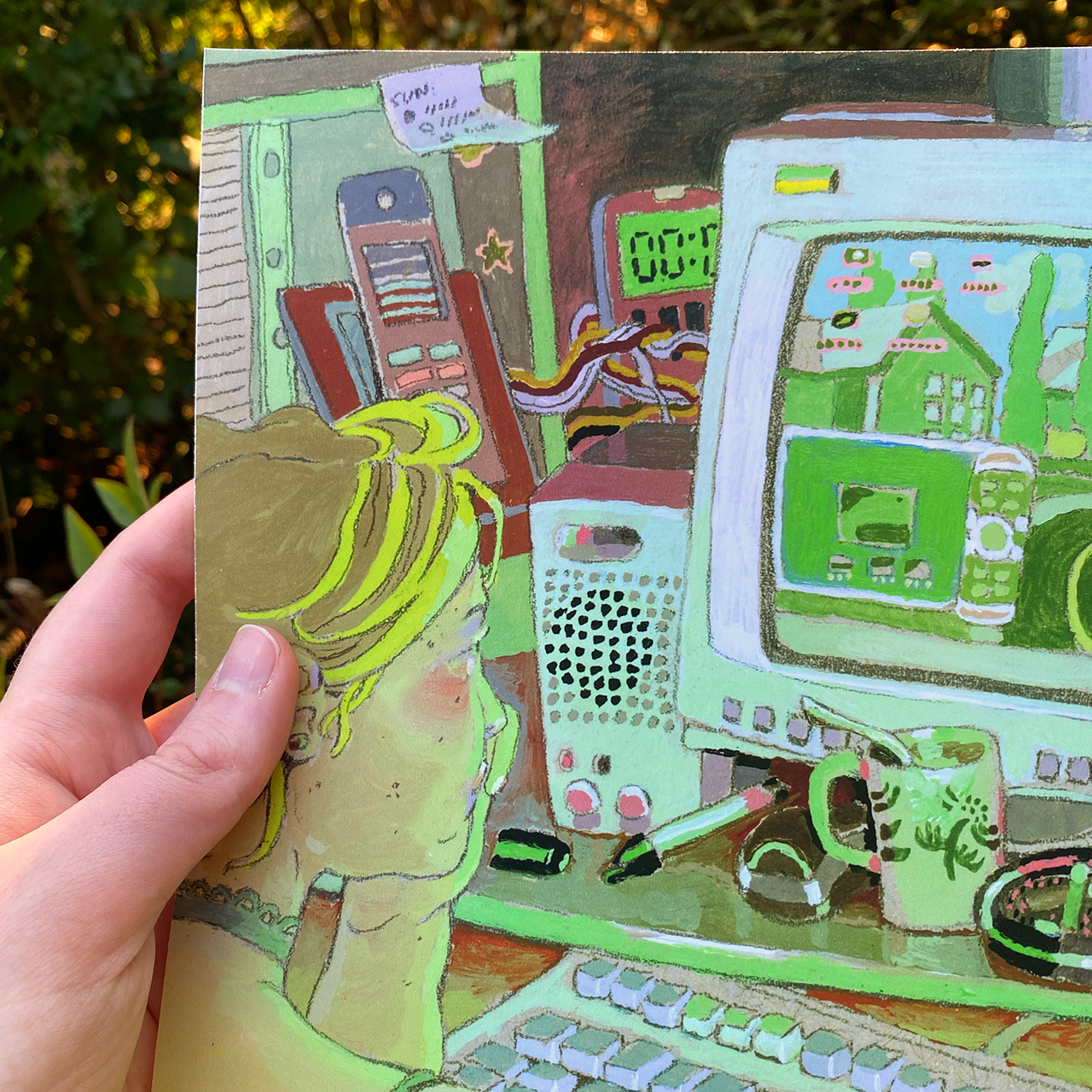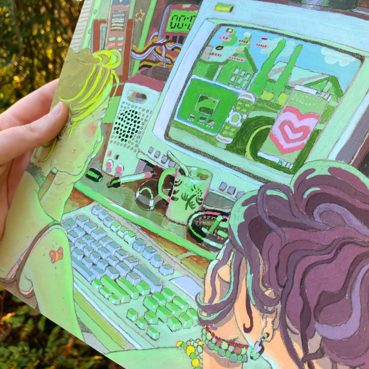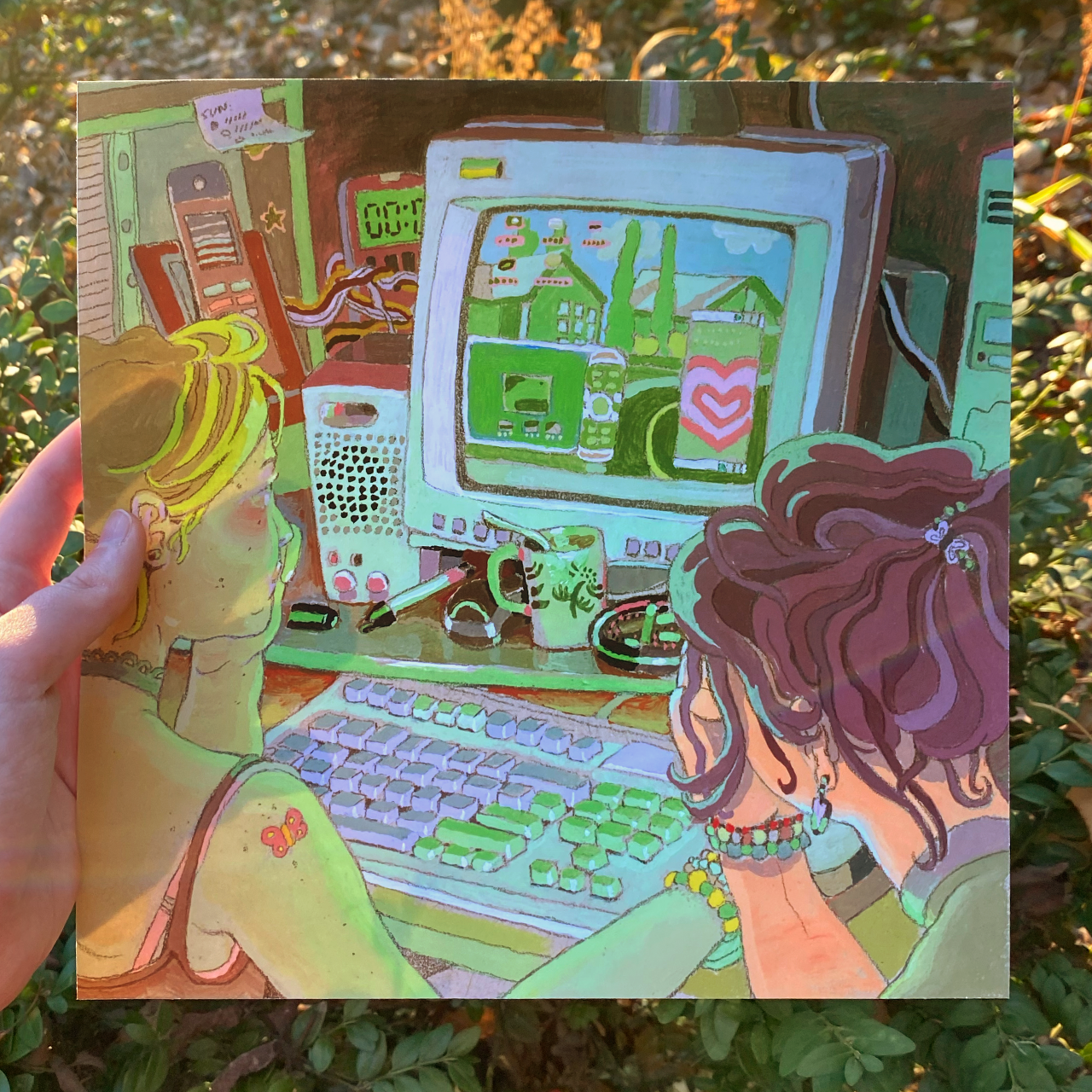★ A high quality giclee print on bright white Moab Entrada—an archival paper for beautiful, long-lasting prints, made of 100% cotton and slightly textured to create deep colors and a velvety matte finish. “2006” is the feeling of sitting side by side with a friend on the family computer, back when things were okay. This 10″ x 10″ print retains the intricate, handmade quality of the original artwork.