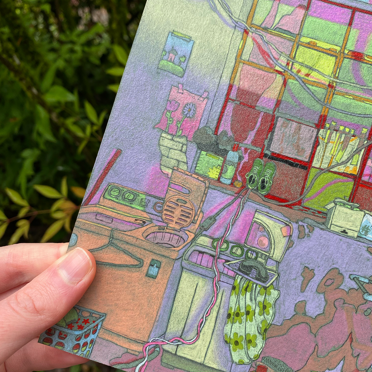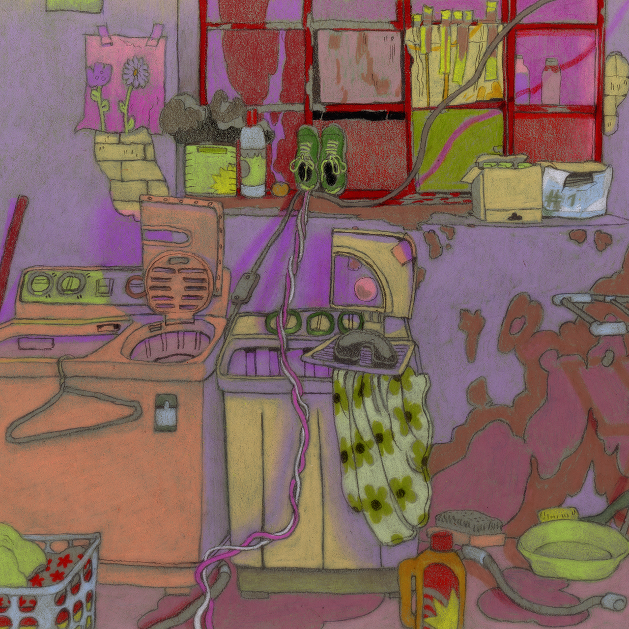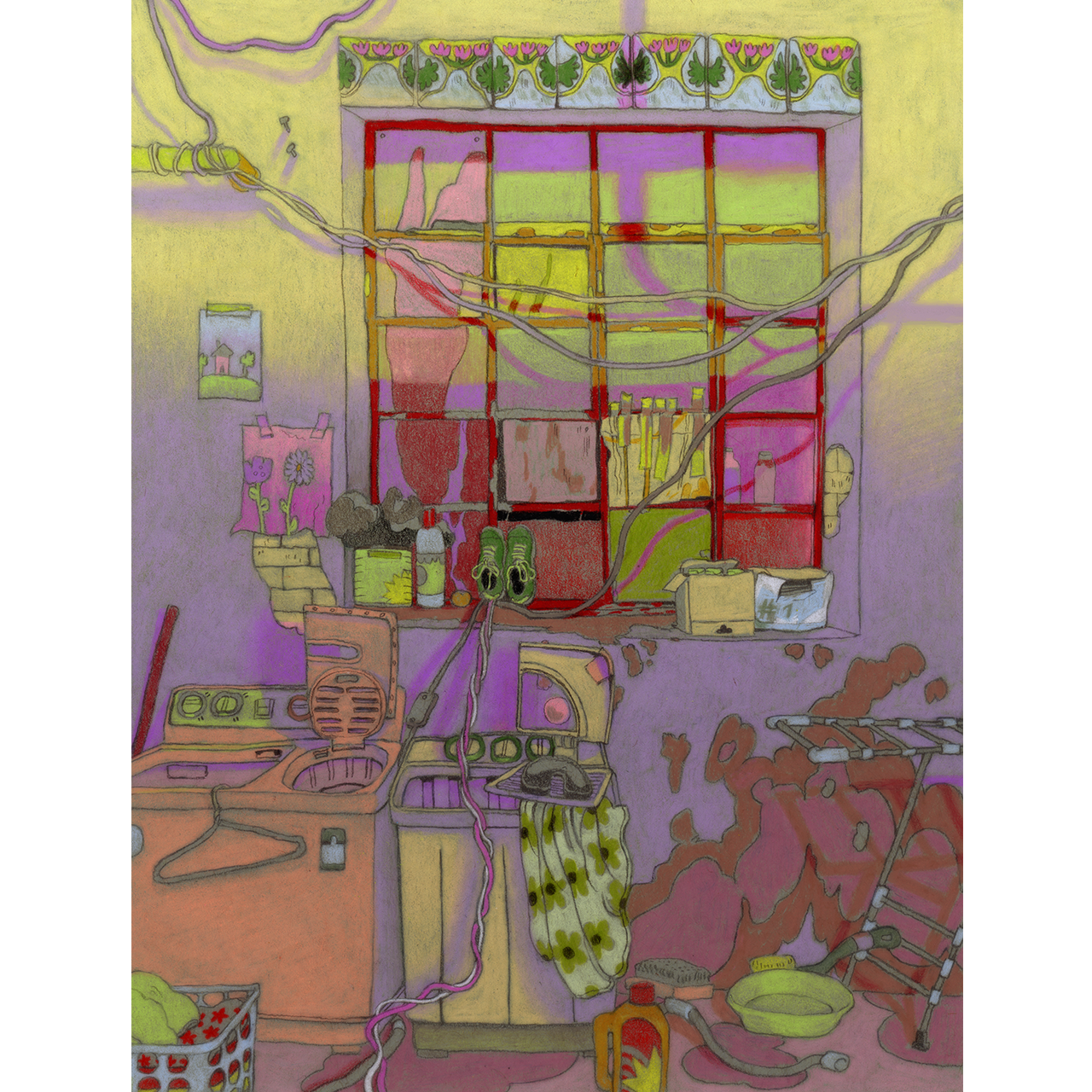 “Morning Laundry” is a horizontal shaft of light lowering on the day, turning the cracked and shabby bits of everyday life into a moment of golden peace.