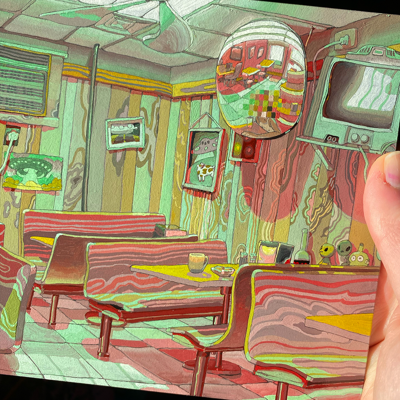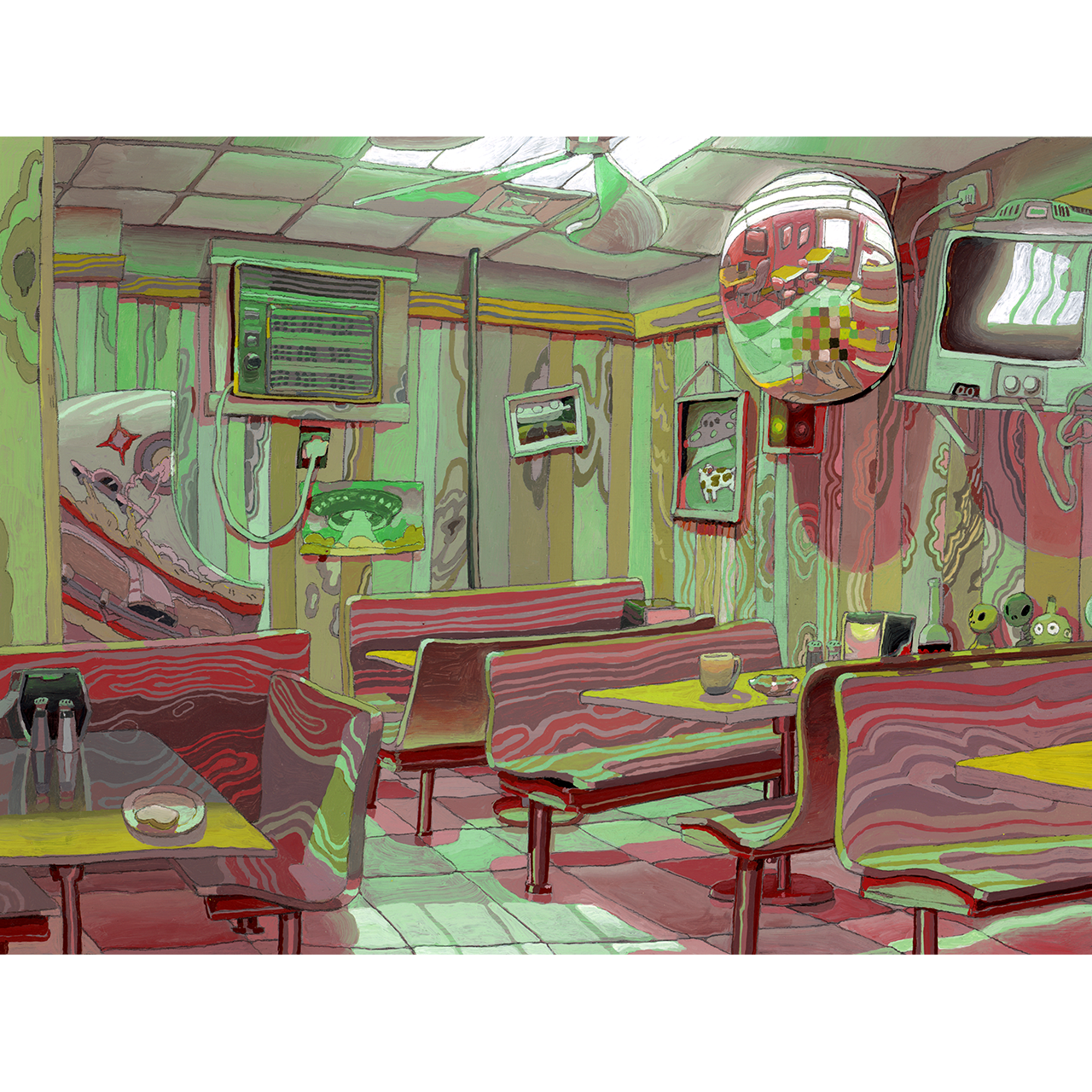 “Nevada Diner” is the truck stop that takes you to another dimension, lit with an alien glow.