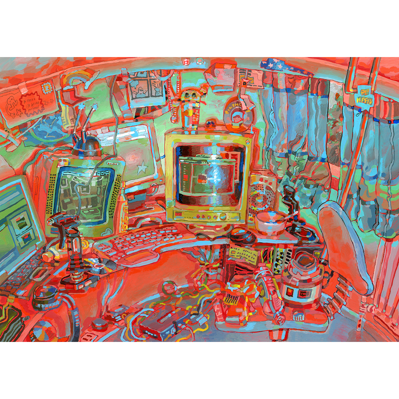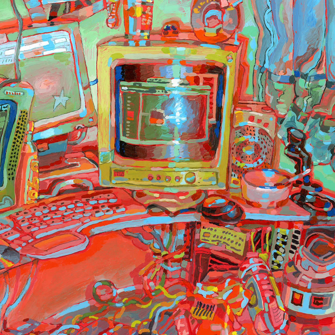 The VENTRICLE series features the computer as the warm center of a bedroom, the powerhouse of the organ, the main chamber fed into by auxiliary units. The monitor is a room within a room, and the meatspace bends around it like a protective cavity.